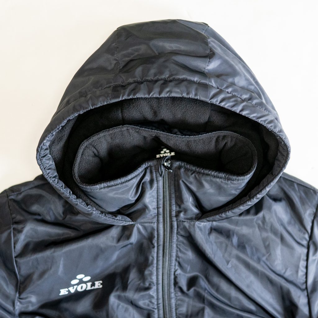保温性に優れつつ、肩や腕を動かしやすい設計で、トレーニング前後やベンチ待機中も快適に着用できます。